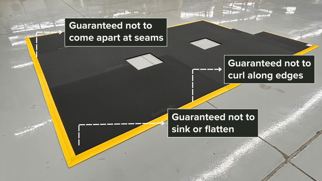 AcroMat uses an exclusive cut-and-bond design combined with a material that’s impervious to liquids and chemicals. The collective approach allows AcroMat to guarantee and warranty non-curling edges.