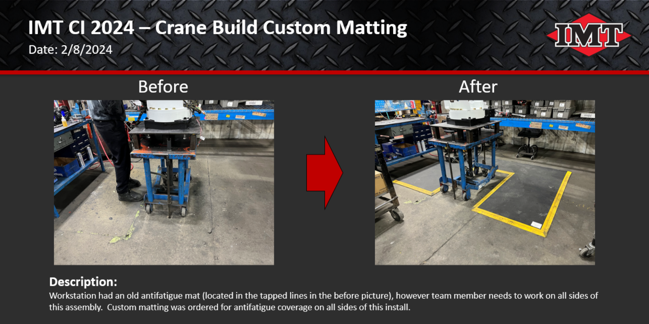 - IMT eliminated mat-related trip hazards with custom mats designed to fit