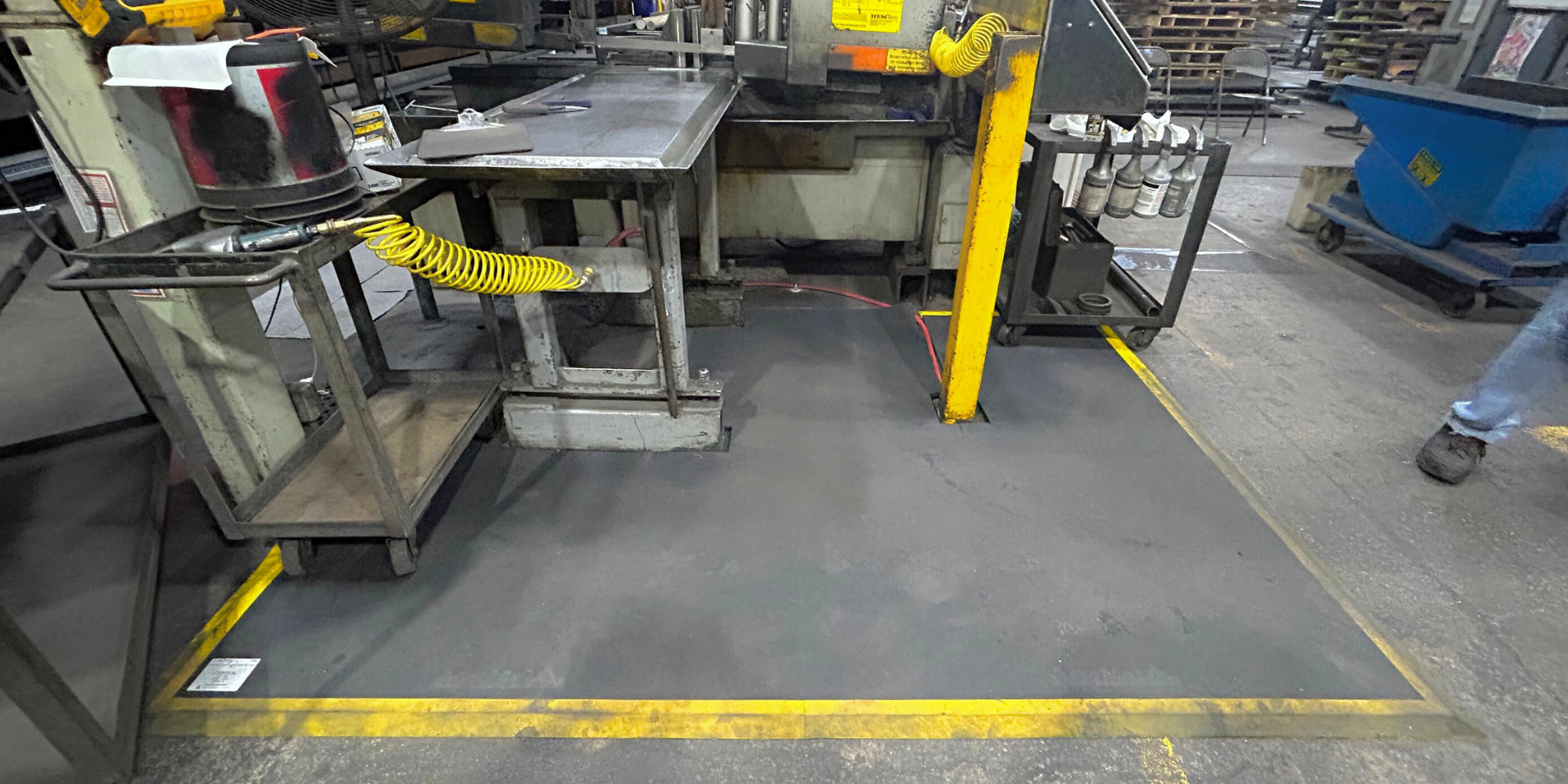 The team at IMT was previously filling workspaces with a random assortment of mats. The piecemeal approach left gaps between mats, caused ergonomic issues, and forced machine operators to constantly watch their feet rather than focus on the work.