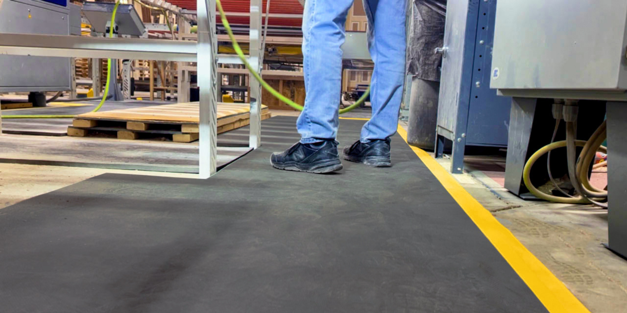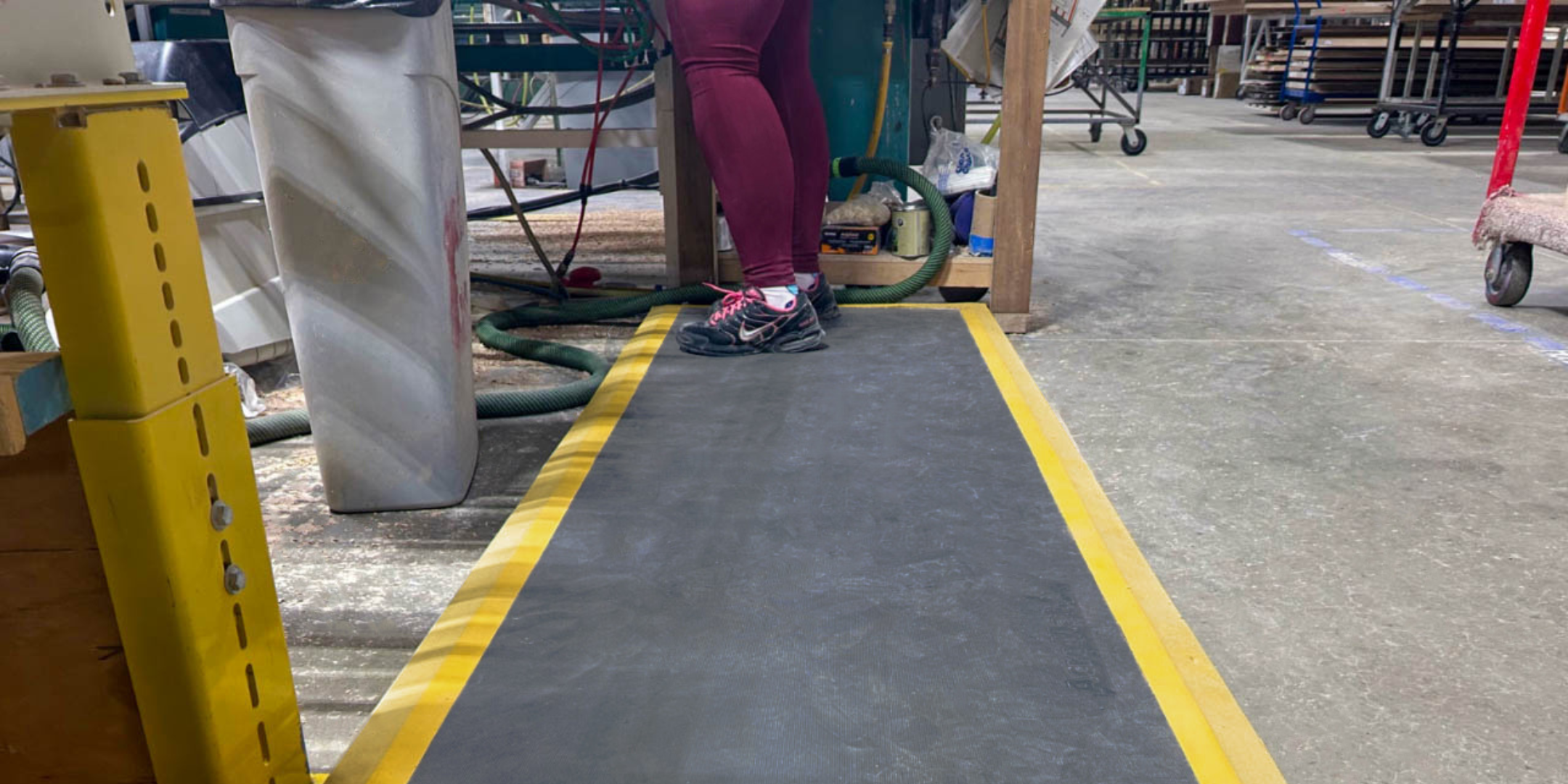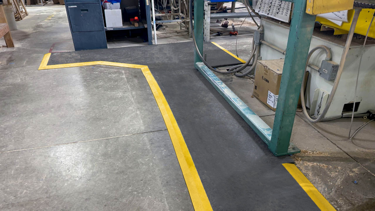 Previously, the team at TruStile Doors was buying long rolls of anti-fatigue mat and hand-cutting them to fit individual work areas. This approach led to the serious injury.