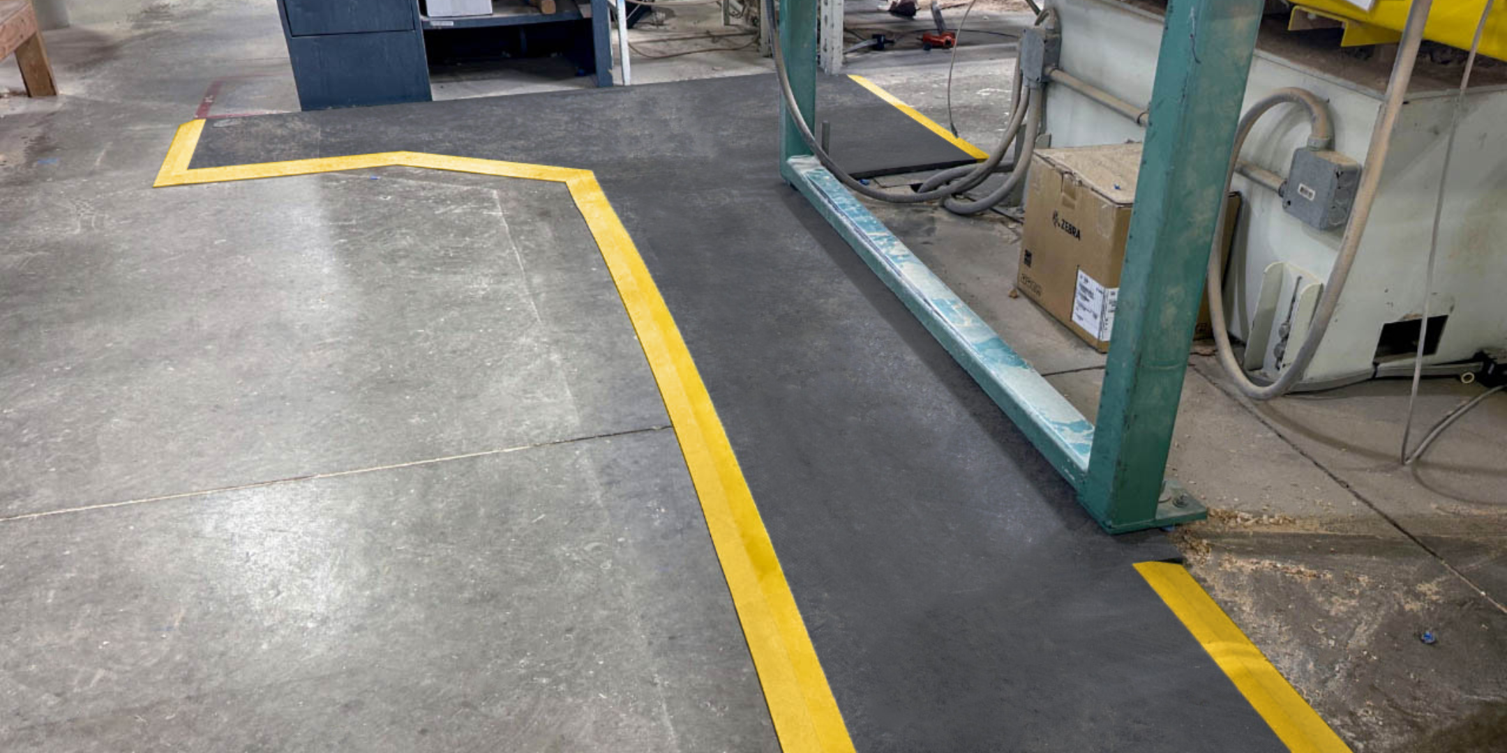 Before: Operators were hand-cutting roll mats for their work areas, with the gaps and constant on/off stepping leading trip and fall injury that took an operator away from work for several weeks.