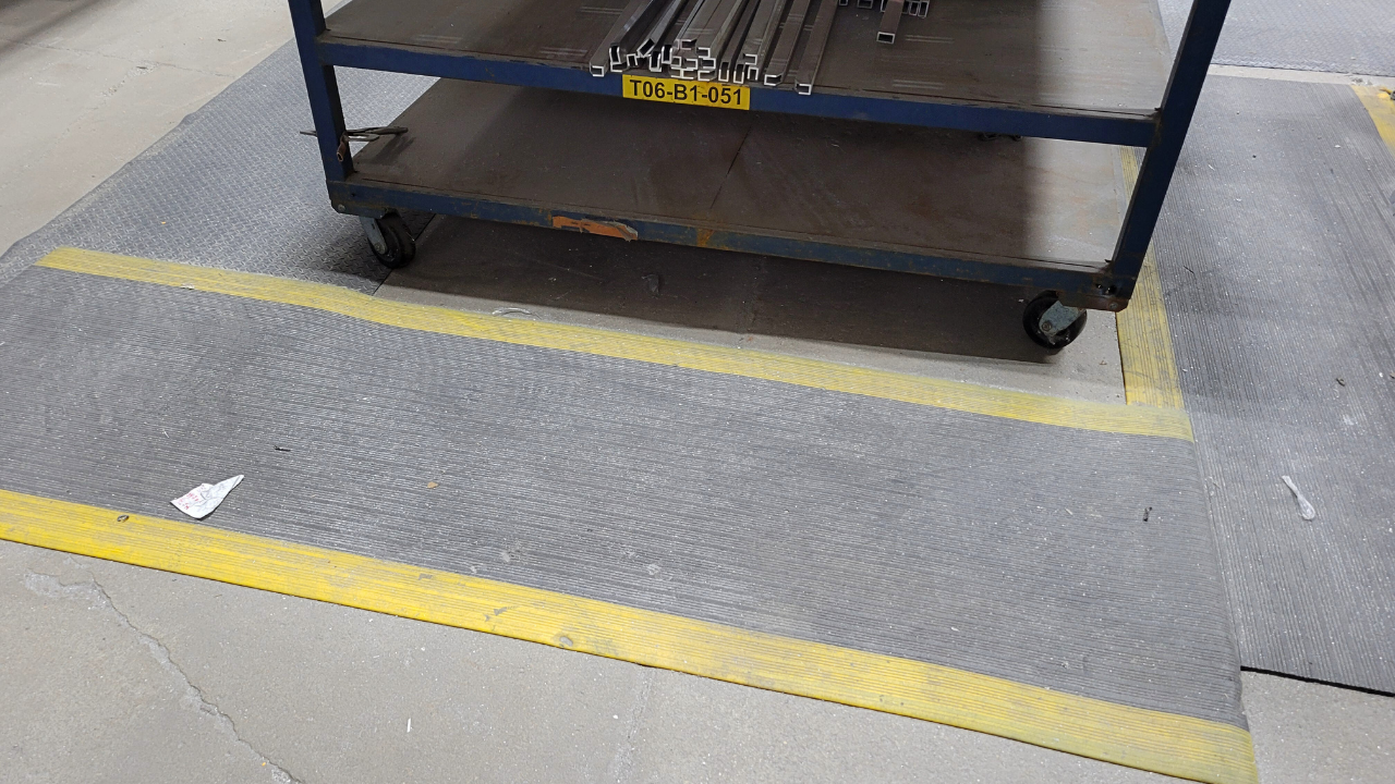 This included yellow safety borders on all entry points to improve spatial awareness, and custom shape/size requirements to eliminate trip hazards caused by piecing roll mats together.