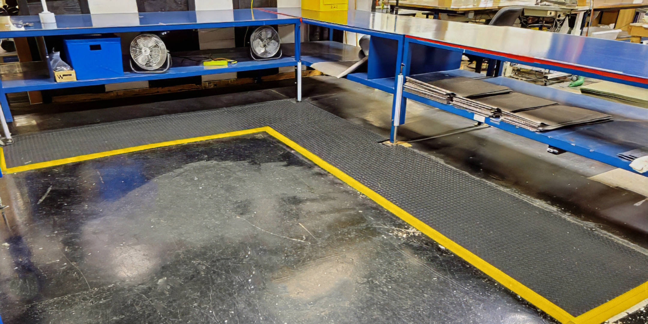 "The new mats are much better. My feet aren’t sore anymore. I like the fact that they go around the whole table. It makes my work go much smoother, being able to move around the whole area without stepping over gaps."
