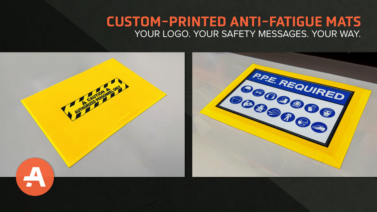 With our in-house UV-LED custom printing service, your AcroMat anti-fatigue mats can communicate critical safety messaging, reinforce brand identity, and create a cohesive and professional look—all at the ground level.