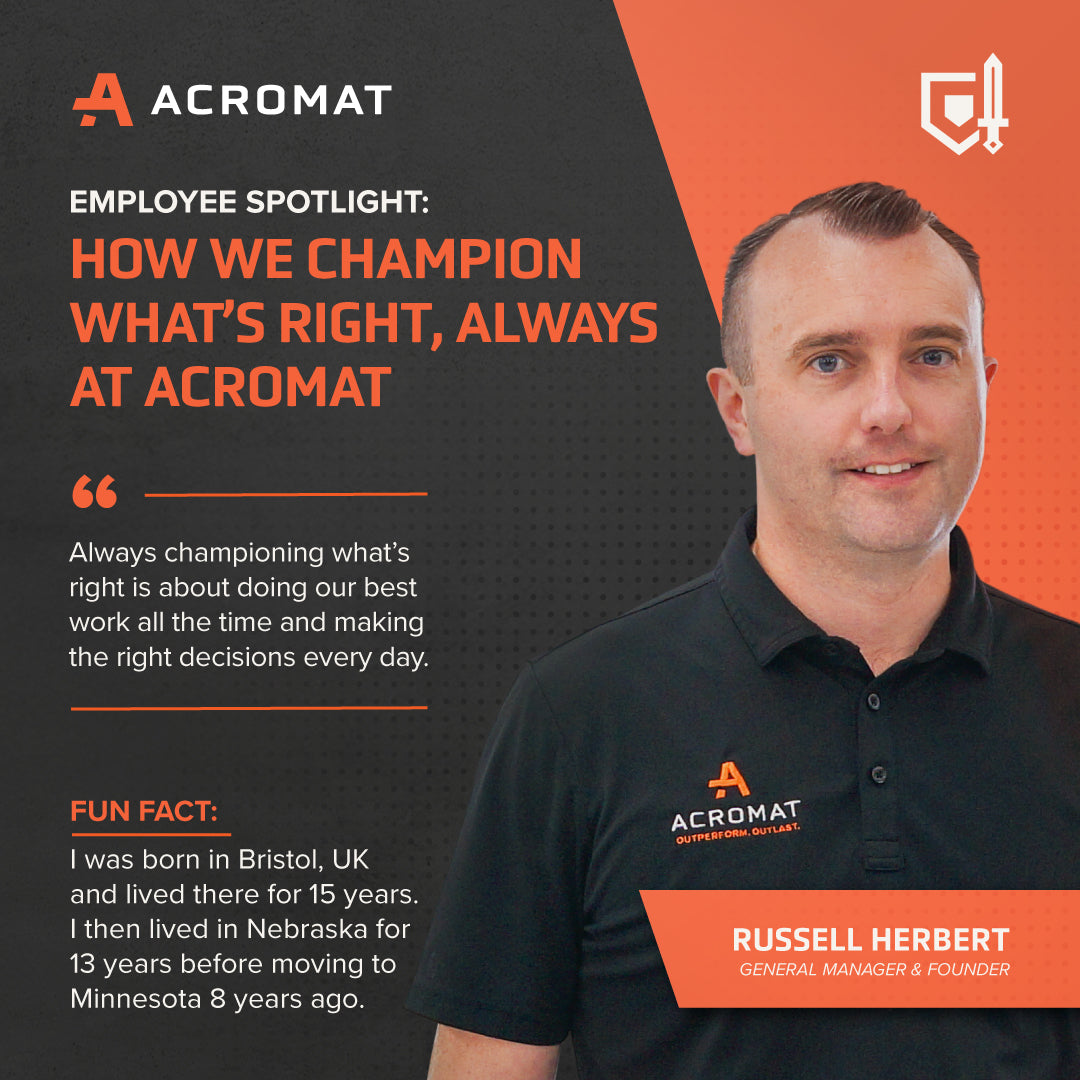 What do the the AcroMat values represent to our people, and what do they look like in action? How do we uplift each other, and through that how we do better support our customers? Learn more about our values and hear from a few AcroMat team members below.